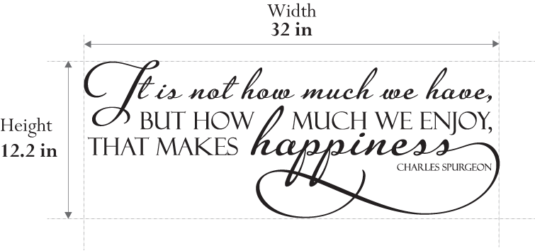 Most of decals that we sell come in a variety of sizes measured as total width by height. The best way to determine the correct size for your wall is to measure your space. It is easiest to visualize by marking the corners of where you want the design to be applied with something removeable like blue painter's tape. The size of the design is based on the total area as illustrated below. If you need a specific size or would like a modification, please contact us and we will try to accommodate.