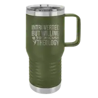 This campfire mug is made from ceramic. 15 oz. Microwave safe. The design is the same on the front and back of mug. Hand-wash recommended.