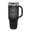 Powder coated Stainless Steel Travel Mug features double-wall vacuum insulation with a clear lid. The mug has a narrower bottom to fit most standard cup holders. It is 2X heat & cold resistant compared to a normal travel mug and is BPA and lead free.